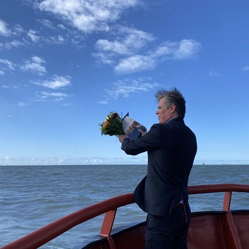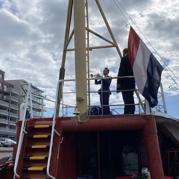Ook heeft een trompettist voor vertrek de ‘Last Post’ ten gehore gebracht, gevolgd door een moment stilte. Dit gaf nabestaanden en ook ons een moment om stil te staan bij het afscheid van overleden mensen op zee. De stilte werd doorbroken door het luiden van de scheepsbel door Jaap Roos.