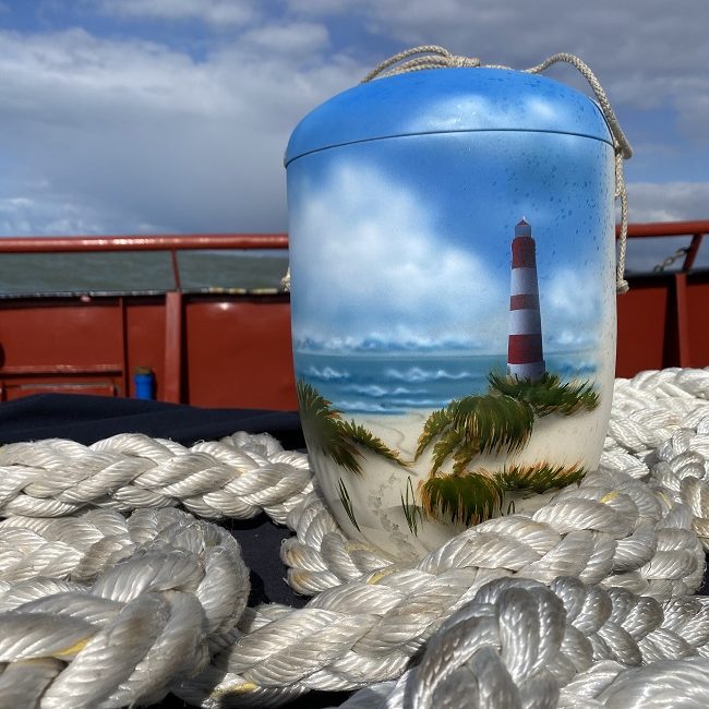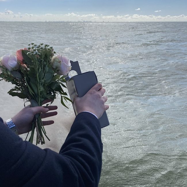 Vandaag zijn wij om 15:55 uur met verschillende assen van overledenen met het schip de m.s. Maartje vanuit de 2e binnenhaven van Scheveningen vertrokken naar een mooie locatie ergens opzee. Voor vertrek hebben wij kennisgemaakt met verschillende nabestaanden op de kade die hun dierbare kwamen uitzwaaien en of nog een bloemengroet wilden overhandigen om bij de verstrooiing van de as van hun familielid mee te geven.